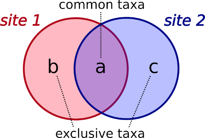 - a: number of common taxa of both sites.