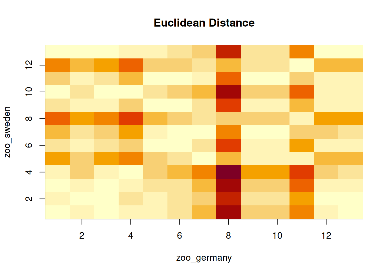 That’s good, right? Perfect similarity happens at 0, which is a lovely number to start with. If we now compare zoo_germany and zoo_sweden, we should expect a larger number: