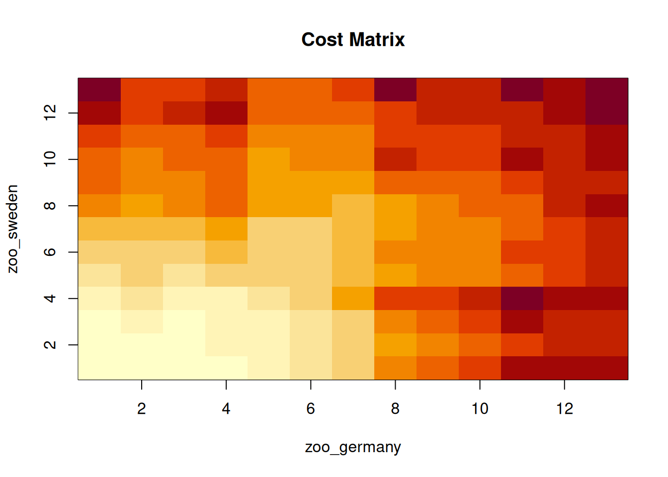 Before I said that one advantage of the presented dissimilarity formula is that it returns 0 when comparing a time series with itself. Let’s see if that’s true by comparing zoo_germany with itself: