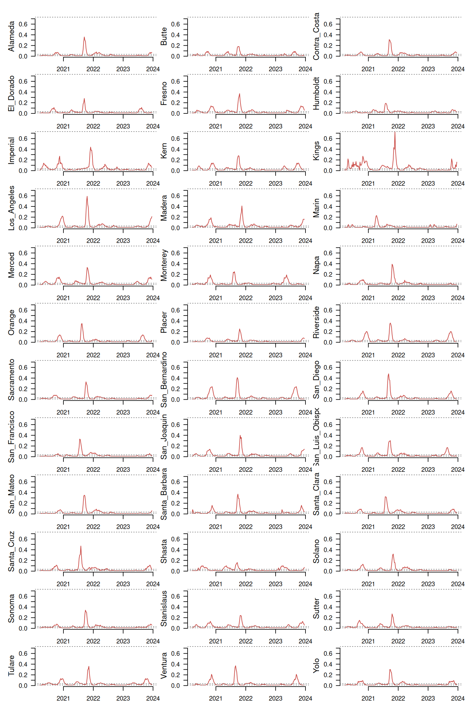 ## [33] "Sutter" "Tulare" "Ventura" "Yolo"